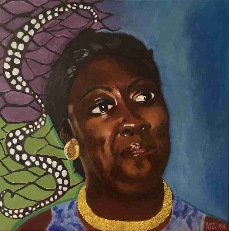 Karin Merx, 2019, portrait of Lady Phyll Opoku-Gyimah, 50 x 50 cm, oil on Canvas, Private Collection