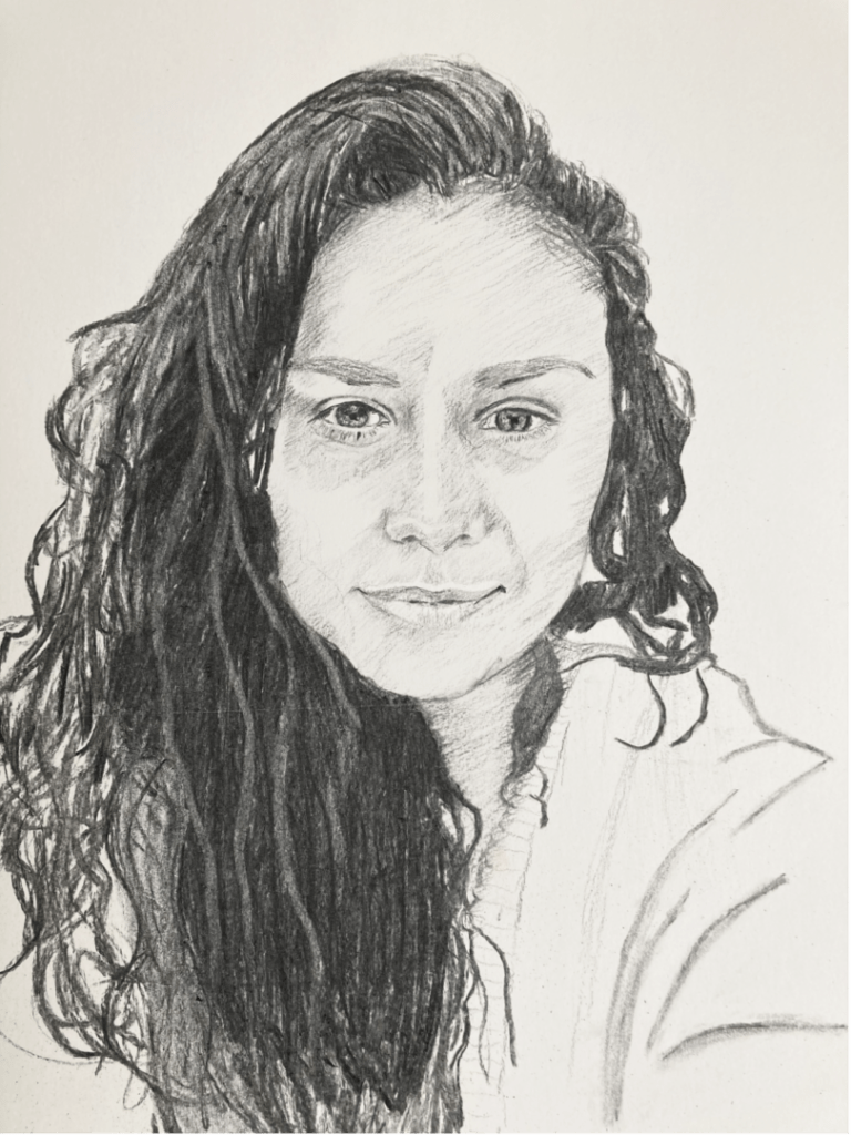 Karin Merx, 2021, Jessica Agudelo, charcoal on paper, Private Collection