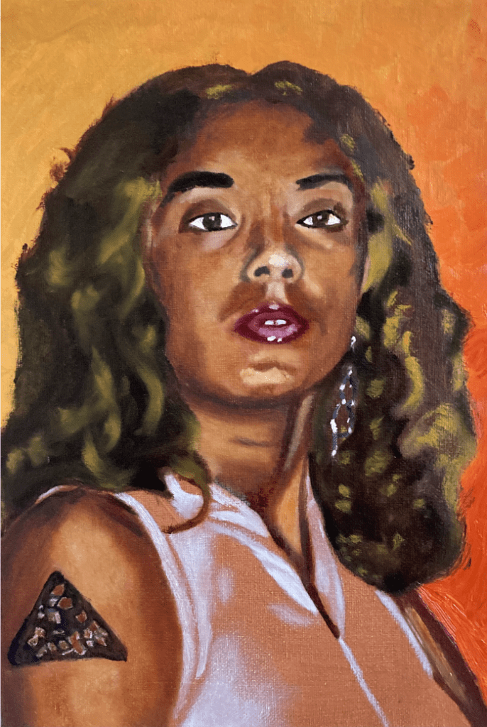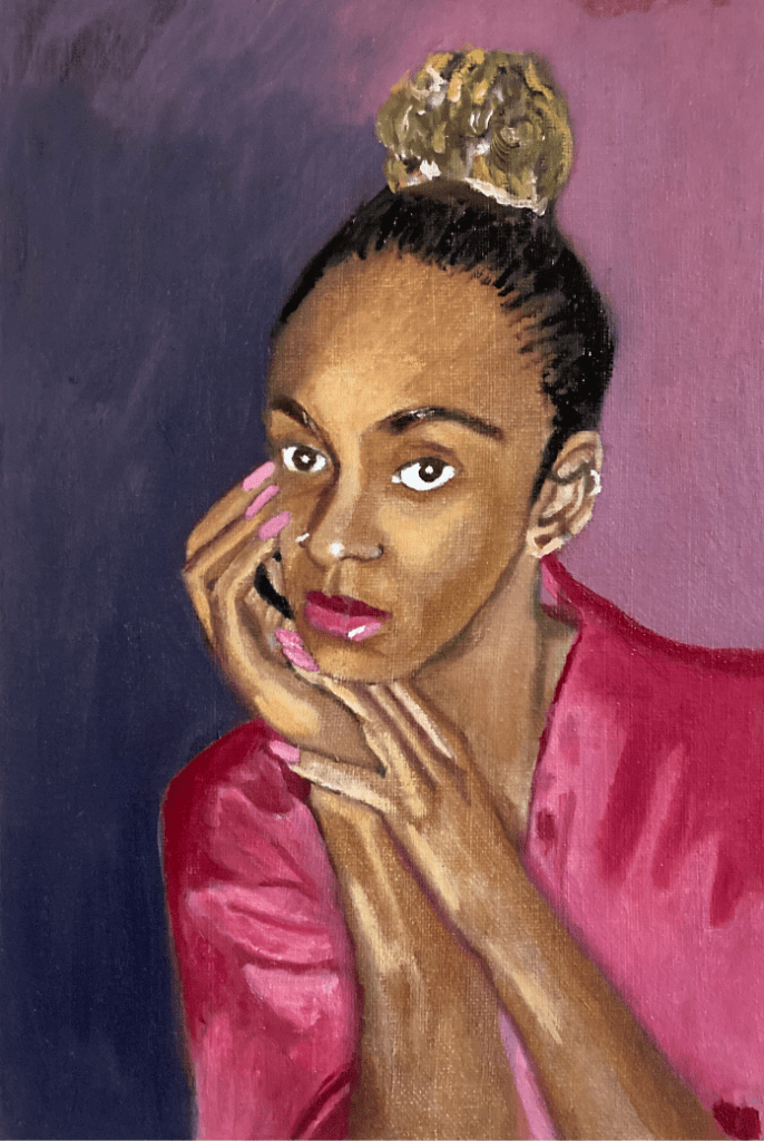 Karin Merx, 2021, Portrait Giselle, oil on canvas, 21x30cm
